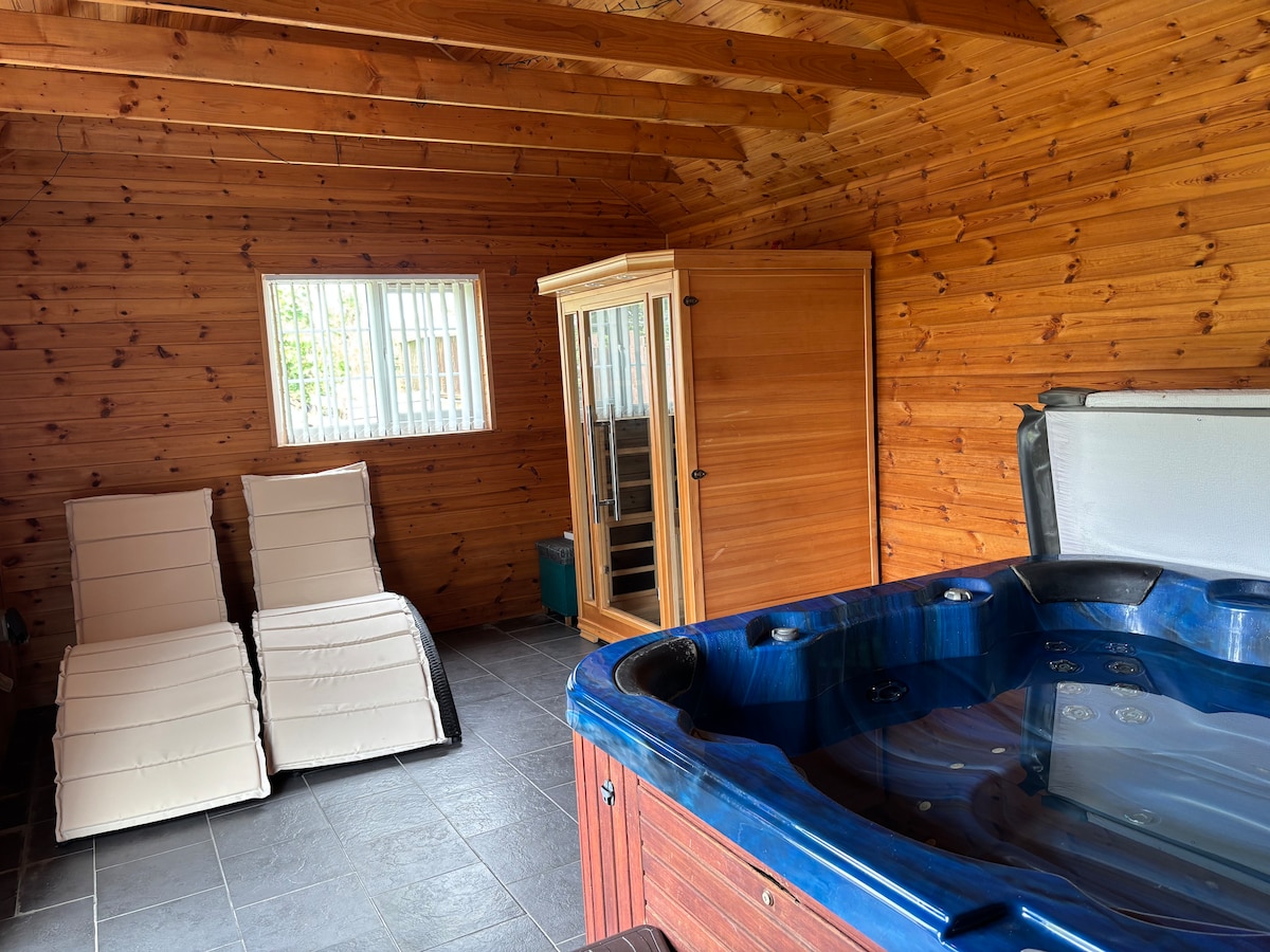Having its own Healthmate Red Cedar Wood FAR INFARED SAUNA evoking the calm essence of the forest is the perfect way to relax detox and enjoy the perfect healthier holiday, all these benefits in the comfort of the Amazing HIDEAWAY HOUSE with log fire &hottub too.Amazing walks from your door.45 mins to nearest seaside town. My place is ideal for couples, families with kids and furry friends{pets}solo adventurers, and large parties, who just want to get together, for those extra special occasions