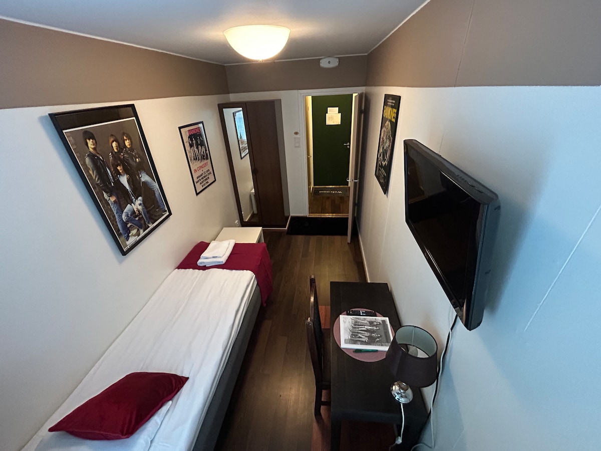 Winter offer free parking for hotel guests until end of March 2026. Homelike hotel room with great amenities at Hiisi Hotel Turku Seaport in Turku Harbour. The room featuring 2 single beds is suitable for up to 2 persons. Work desk and chair and an ensuite bathroom, a flat-screen tv and wifi. All rooms feature a mini fridge. Linen, towels and final cleaning are included. No breakfast, reception or air-conditioning. Please note rooms are both on 1st and 2nd floor and the hotel has no elevator.