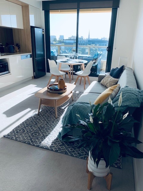 @__littlejourney__ Situated on Claremont Street, above South Yarra's most bustling cafe, Two Birds One Stone. The apartment is an elegantly styled 1 bedroom with high ceilings on the 15th floor (there are 16 floors). An east facing corner apartment with Chapel Street and mountain views. The kitchen is equipped with Miele appliances, dishwasher and a dining table for 2. Rain shower in the bathroom. Grown Alchemist shower products. European laundry. The outdoor area has a BBQ.