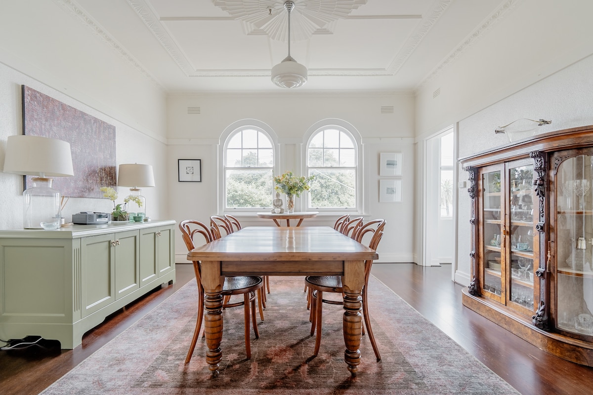 Tree canopy. Oak floors. Art Deco bones. Old finds. New comforts. Curated for this space. As seen in Apartment Therapy. Wake up to green. Step into it. Fitzroy Gardens fifty metres. Feeling Italian? The restaurant's on the corner. Gertrude St for brunch. Smith St for dinner. Tree-lined, character-filled streets. The suburb everyone wants to live in — and you're staying here. MCG in five. Tennis in ten. City through the gardens, fifteen minutes on foot. Old Melbourne. Done beautifully.