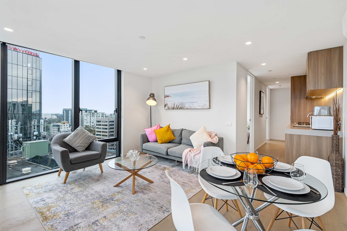 This luxury 2 bedroom **adults only** apartment situated in the heart of South Yarra, just off Chapel Street, has stunning views over surrounding suburbs from its level 20 position. Situated in the Vogue development which features communal amenities such as an indoor swimming pool, jacuzzi, steam room, sauna, gym, tennis court, extensive gardens and more. Please read the full listing below before booking to ensure you have all the important information to give you the best possible stay.