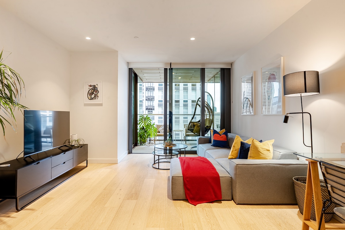 Welcome to my apartment with breathtaking city views. Nestled in the heart of Fitzroy Street, St Kilda, this urban oasis offers a comfortable stay for solo adventurers or couples. As you step inside you'll find everything you need from a well equiped kitchen and a living room with both a 2 seater and 3 seater couch and a 75inch TV. The master bedroom has a glass window wall allowing a dazzling city view from your bed. With its soft lighting and minimalist design, you will be well rested.