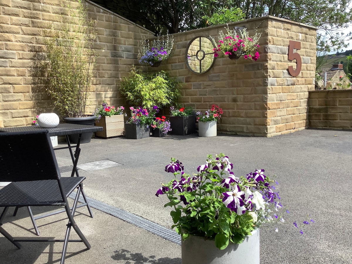 15 mins (0.7 mile) easy level walking on well lit road from the centre of Holmfirth. Ideal for the Picturedrome and the many bars, restaurants and attractions. Stunning views over Cartworth Moor and Holmfirth. Local attractions include: Holmfirth Vineyard - 1 mile The carding Shed - cafe & vintage car gallery Picturedrome Helicopter rides Summer wine exhibition & tours Digley reservoir Langsett reservoir Holm Moss walking / cycling More photos on FB - Malkin Wood Studio Holmfirth