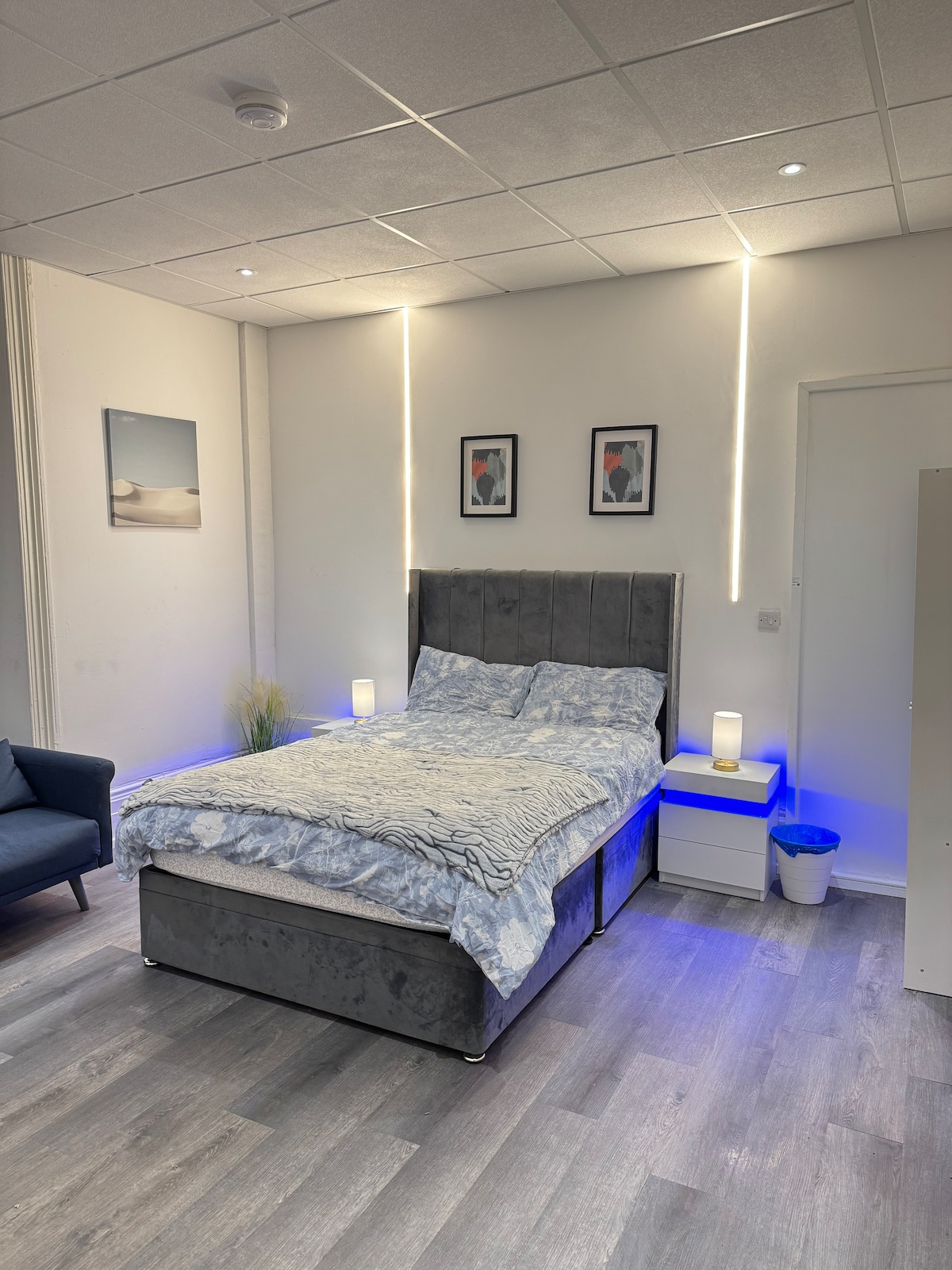 This is a lovely self-contained studio flat in the leafy suburb of Hunters Bar. A light and airy open-plan space with modern facilities and access to a large garden with patio & decked area. Complimentary tea, instant coffee, biscuits, muesli and fresh milk are all provided. Amenities: comfy double bed, TV with DVD, superfast Wifi, fridge freezer, oven, filter coffee machine, toaster, washing machine, ironing facilities. Travel cot and high chair available on request. EV charger onsite!