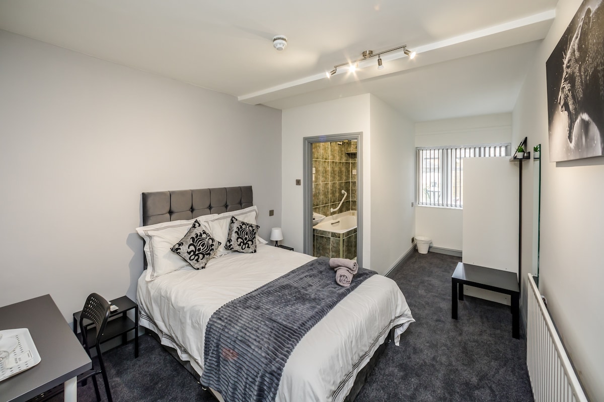Welcome to the renowned Huddersfield Central Lodge! The most central location in the heart of Huddersfield, nestled in ambient surroundings for a serene stay. Our recently refurbed spaces are tastefully decorated & boast sumptuous beds complete with Egyptian linen, flat screen smart TV’s, modern art & bath showers to help you unwind! Complimentary tea/coffee facilities, toiletries & Wi-Fi. Whether it’s professional or leisurely, a short/long visit, enjoy a regal stay in our opulent grounds.