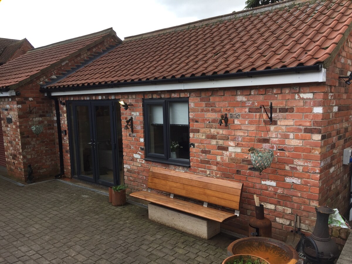 The SYCAMORE suite is a spacious but cosy retreat in peaceful surroundings within Henry's Orchard. This unique space has it's own private courtyard set outside its bifold doors. Located close to many woodland walks, pubs, amenities, attractions in and around Yorkshire and Derbyshire https://abnb.me/P8eNebqIyib With an open living area (with wood burner), sleeping area (with luxury KING SIZE BED) and modern ensuite you can relax, work or base yourself from.
