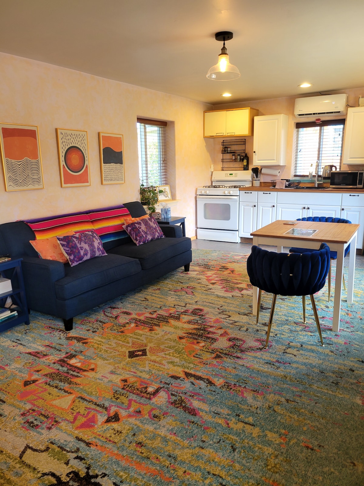 Natural beauty surrounds this little abode. Inside, everything you might need lies at arm's reach. Tiny Miracle strives to be in harmony with nature. Thus, all cleaning products are natural and free of chemicals. All linens are composed of natural fibers and are dried in the sun--weather permitting. And, the tiny kitchen is stocked with organic teas and coffee. Tiny Miracle is a peaceful, quiet spot for a solo retreat; a writer’s haven.