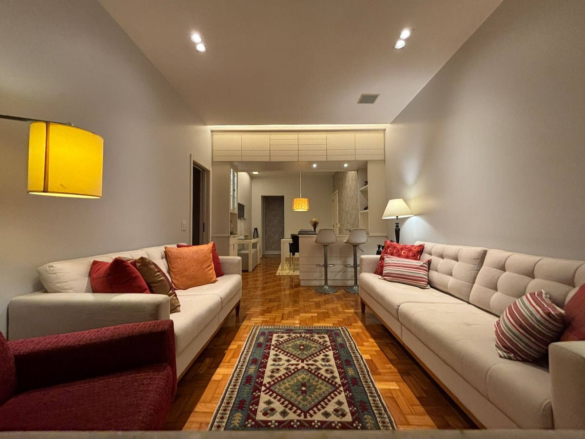 Charming 3-bedroom apartment with a glass-enclosed balcony in the heart of Leblon. Ideal for those seeking comfort, functionality, and a prime location. With 130 m² of well-designed living space, the apartment features 3 suites — one of which can be converted into a home office, already equipped with a sofa bed. The spacious living room is filled with natural light and opens onto a large balcony with a lush green view, creating a peaceful and inviting atmosphere.