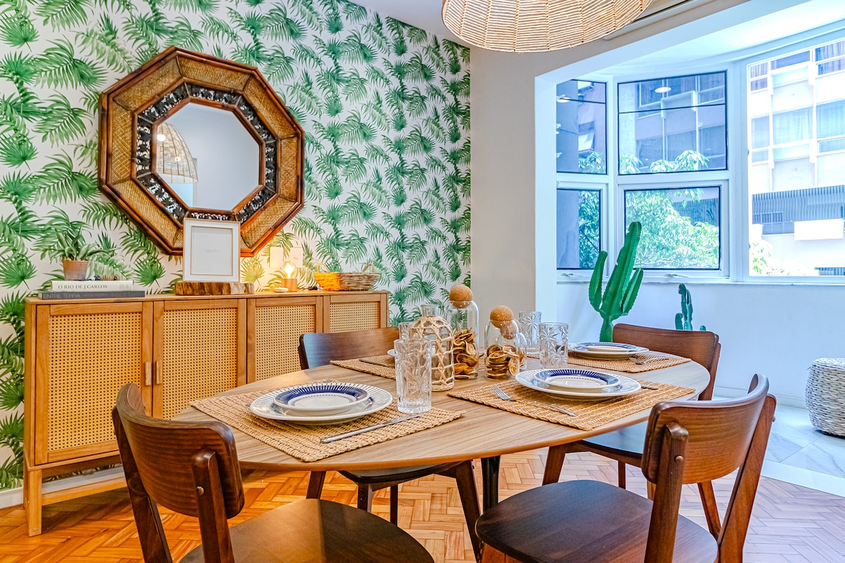 The perfect place for your Carioca experience! Ideal location between Ipanema and Copacabana, one block from the beach, in the safest area of the neighborhood. Easy access to the main sights with General Osorio metro station at less than 10 minutes walking. One-bedroom apartment with lateral sea view decorated by a renowned Carioca architect, that can welcome up to 4 guests. The apartment includes a fully equipped kitchen and a small desk to work remotely. We speak PT/FR/EN/ES.