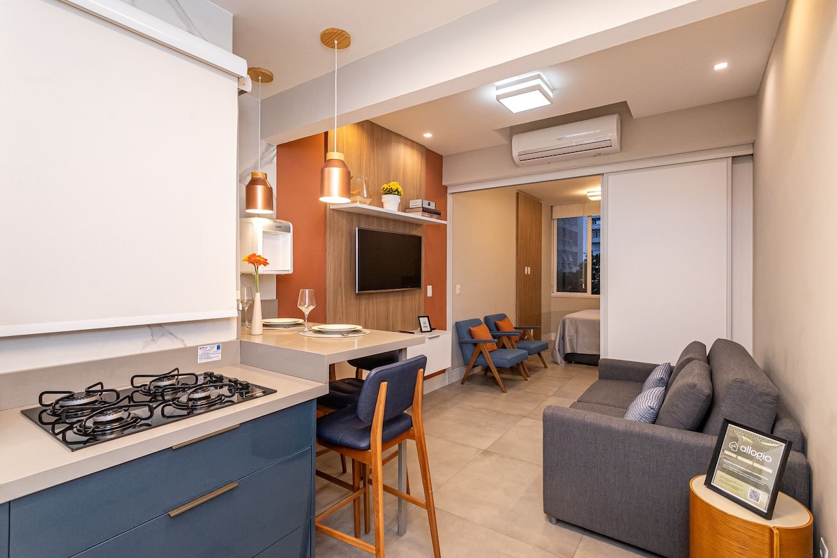 Apartamento inspirado no conceito Loft boutique com vista mar e a 100 metros da Praia de Copacabana. Moderníssimo e funcional! 100% climatizado - com Ar Condicionado Split, em todos os ambientes! O projeto e a decoração tem a assinatura do renomado escritório - AF Arquitetura – premiado inúmeras vezes na Casa Cor. Todo conforto, luxo e requinte que os hospedes merecem! Hospede-se com um SuperHost! Venham para Copacabana Beach! Alan Holanda