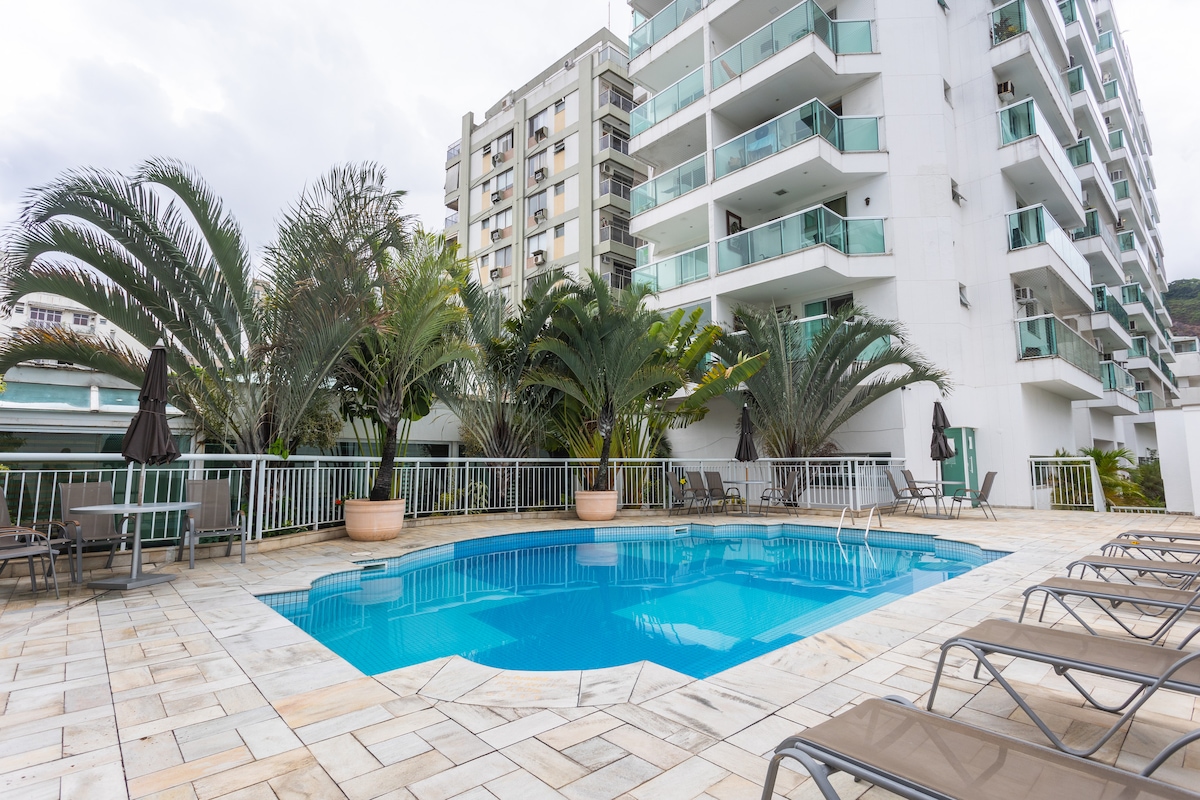 Welcome to your private suite in Botafogo. - Air-conditioned room with double bed and minibar - Modern, comfortable atmosphere - Enjoy amenities like gym, pool, hot tub, and sauna - Best location with all necessities nearby and walkable access - Good value for money - Extremely attentive and quick communication from the host - Always clean and well-maintained Take advantage of your stay to enjoy several amenities
