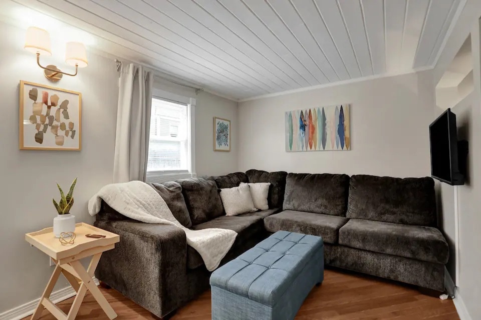 Step into this stylish and comfortable living area. The home features two spacious bedrooms and a double futon for extra guests. Located just minutes from great dining and shopping. Fully fenced yard! ☆18 min to Memphis Airport ☆12 min to Snowden Grove ☆5 min to Landers ☆17 min to Graceland ☆Fenced yard ☆USB plug in ☆Free parking ☆Dedicated workspace ☆Washer/Dryer ☆Roku TV in both bedroom ☆BBQ ☆Patio with Pergola ☆Fully stocked kitchen ☆Self check-in/digital guide book ☆5 min walk to park