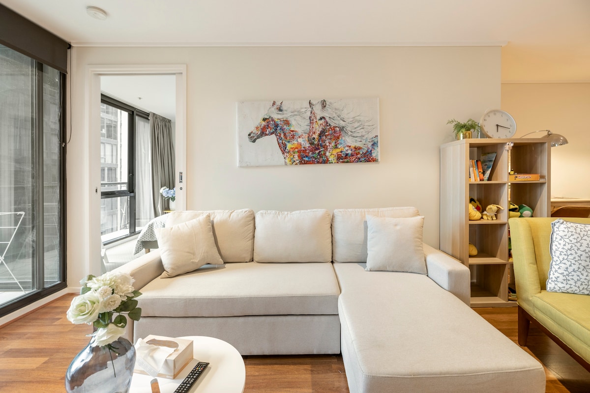 🌟 "One of the best Airbnb’s we have ever stayed at" Relax in this modern Japanese-Scandinavian designer two bedroom home as you explore Melbourne. Located in the Art Precinct of Melbourne, our home boasts a picturesque city skyline view & walking distance to trams/trains.