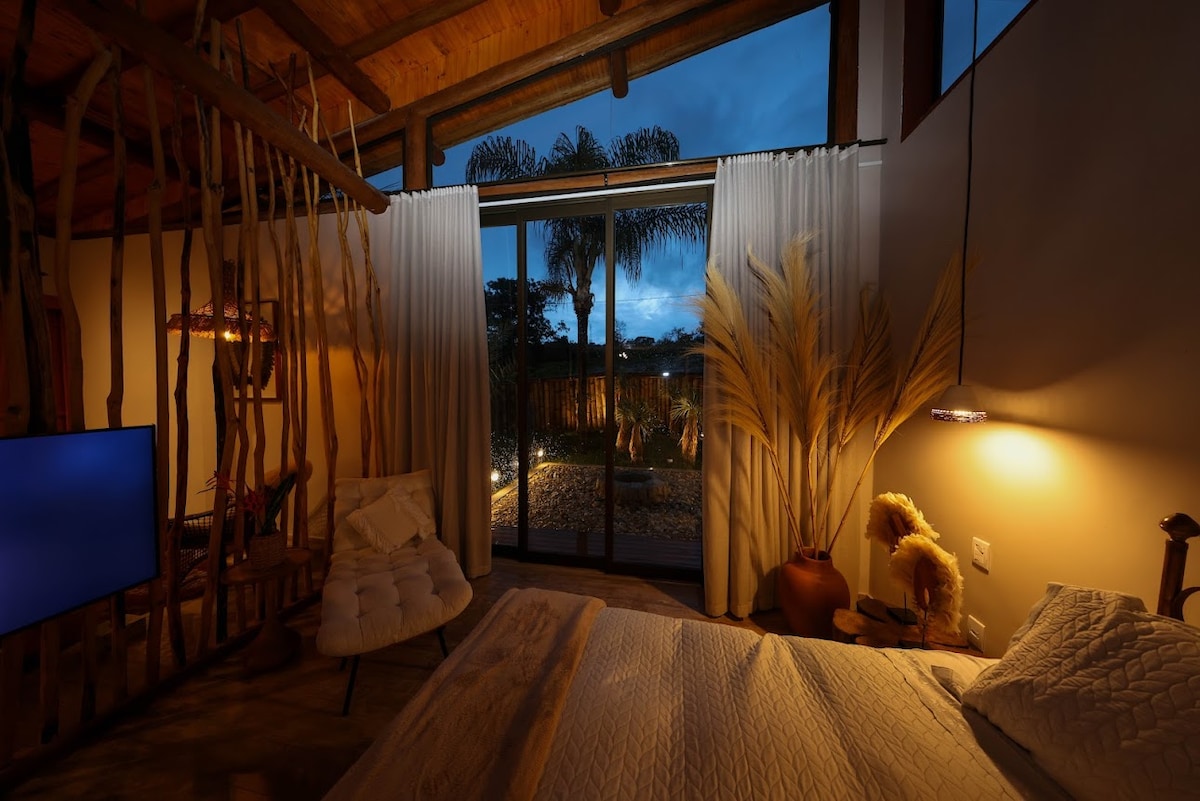 CAFÉ DA MANHÃ INCLUSO A Cabana Araras é um refúgio autêntico e exclusivo em meio à natureza, a apenas 5 km do Inhotim. Com arquitetura rústica sofisticada, lareira suspensa, ambientes acolhedores e vista para o verde, foi pensada para casais que valorizam silêncio, conforto e experiências reais. O café da manhã artesanal está incluso, servido com carinho para tornar sua estadia ainda mais especial. Temos opções de jantares românticos que podem ser contratados a parte.