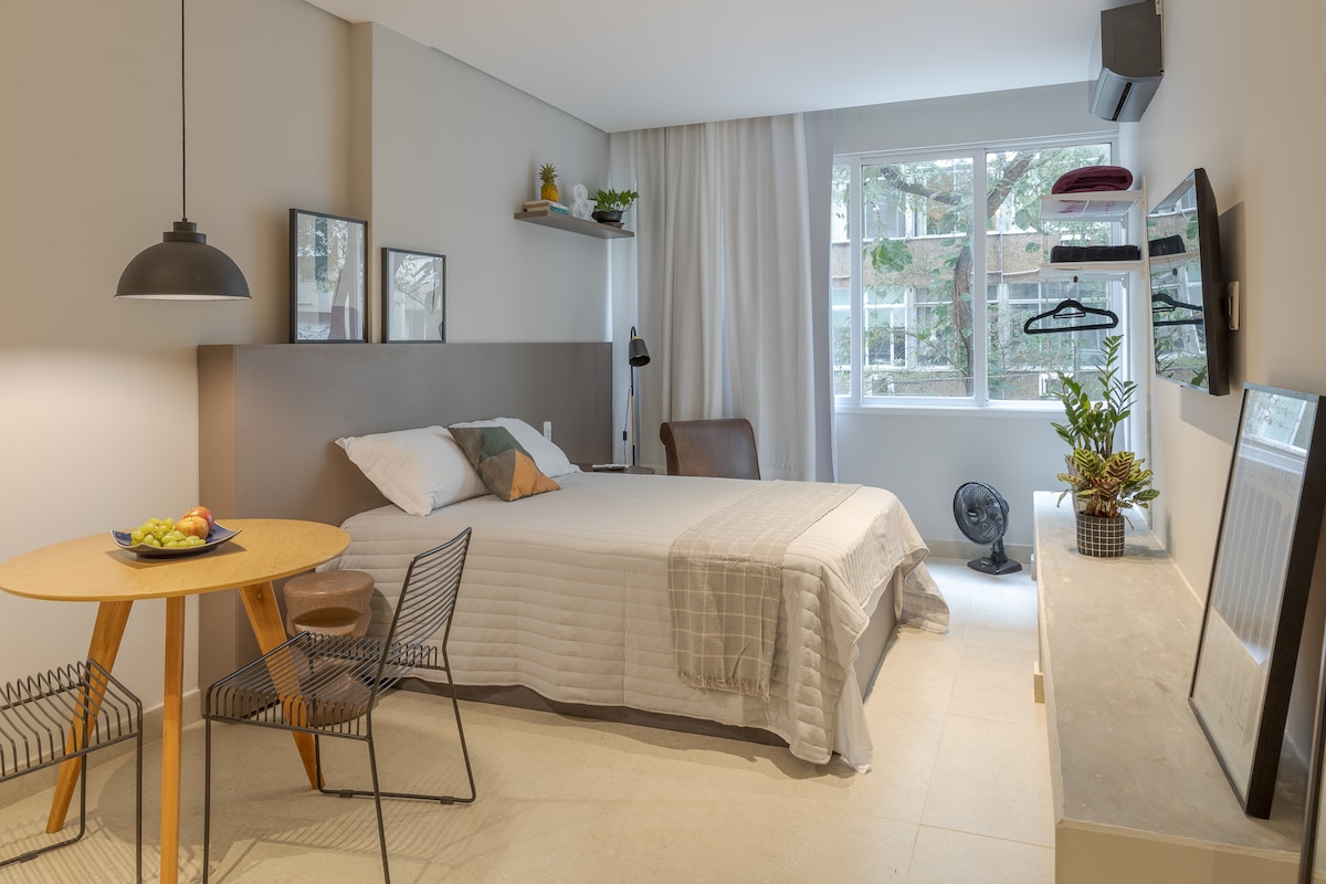 - At Atlântica Av, beach avenue, large and confortble 1 bedroom apt , courtyard view, quiet, clear, and airy; - Enjoy the best location in Copacabana between "Posto" 4 and 5, with a wide variety of restaurants, bars and shops. - Metro station Cantagalo - Luxe, comfort, style and warmth, feel home in Rio - High speed Internet