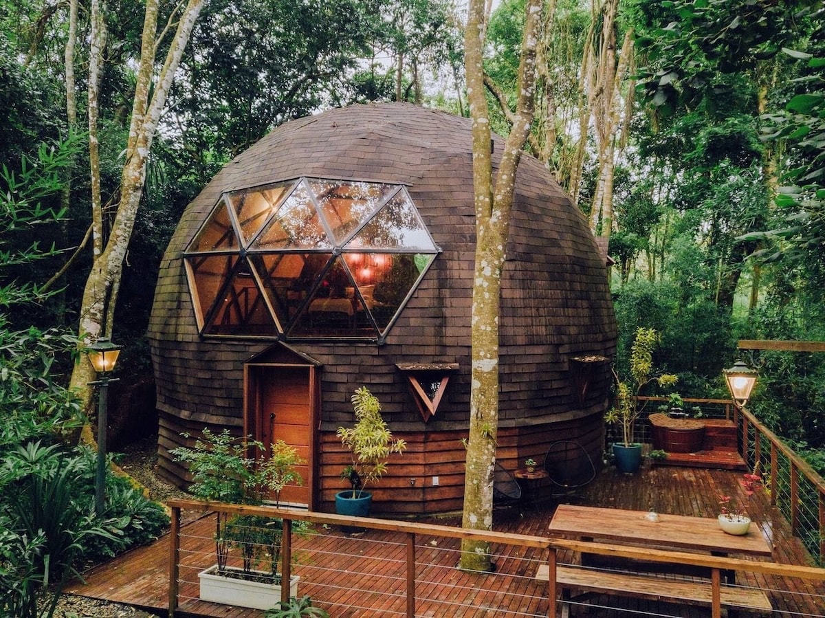 Nosso Domo foi Construído em um lugar muito Estratégico, com uma Vista Exuberante e com muita privacidade. A Estadia é muito inspiradora e com certeza você irá se conectar com a Natureza de forma Orgânica. Queremos que você tenha uma experiência única nas montanhas se hospedando em um Domo totalmente Sustentável e Surpreendente. Funcionamos no estilo Self Accommodation, os hóspedes levam tudo que desejam consumir. Leve roupa de banho para desfrutar das nossas Cachoeiras e Trilhas e uma Jacuzzi!