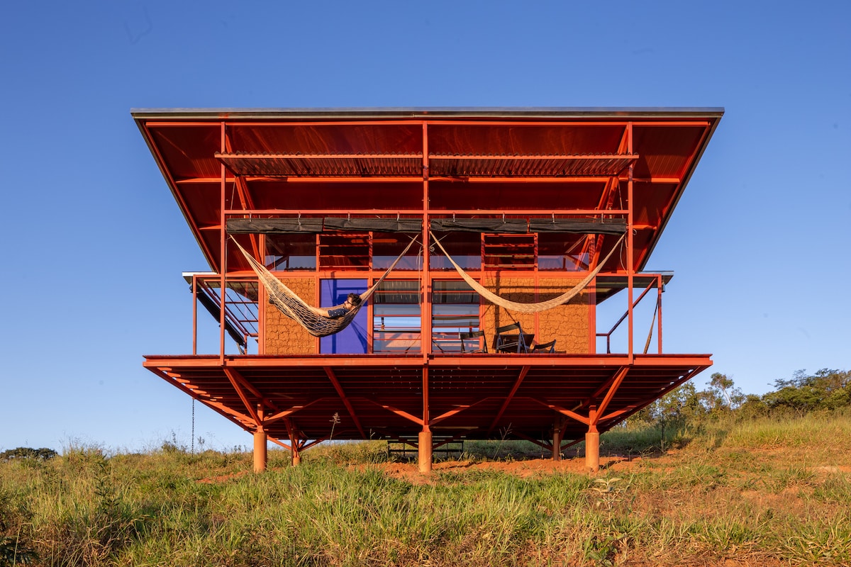 A Casa Igarapé é uma cabana ecológica no pé da Serra de Igarapé, feita com terra crua, aço, madeira e cerâmica. O refúgio se integra ao ambiente: da varanda ou do spa você tem vista aberta para as colinas, com intenso pôr do sol e céu estrelado sem as luzes da cidade. Tudo é silêncio, quebrado só por tucanos e siriemas. Boa para trabalho remoto com concentração. Entre Itaúna e Inhotim, é ideal para casais românticos de Belo Horizonte e região ou de outras cidades, à procura de paz e aconchego.