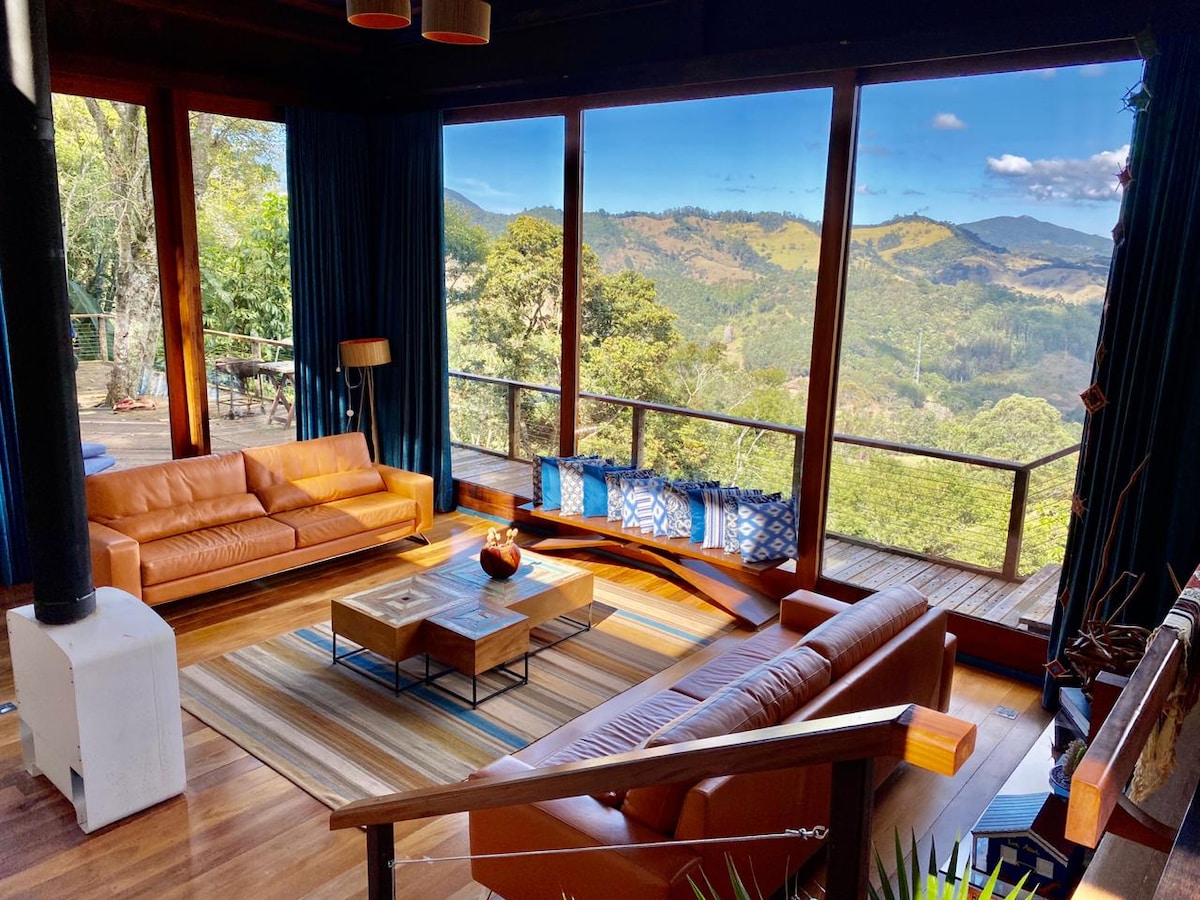 Experience the best of Mantiqueira: safety, comfort, and nature. Nestled in the heart of Mantiqueira's forest and situated in a private condominium, our corten steel house, with expansive windows, is distinguished by its local art and craftsmanship. It accommodates 10 guests, expanding to 24 with adjoining chalets. We provide Wi-Fi, spring water, daily cleaning, and a regional breakfast. Perfect for events, gatherings, and retreats. We offer services from masseurs, chefs, and exclusive tastings