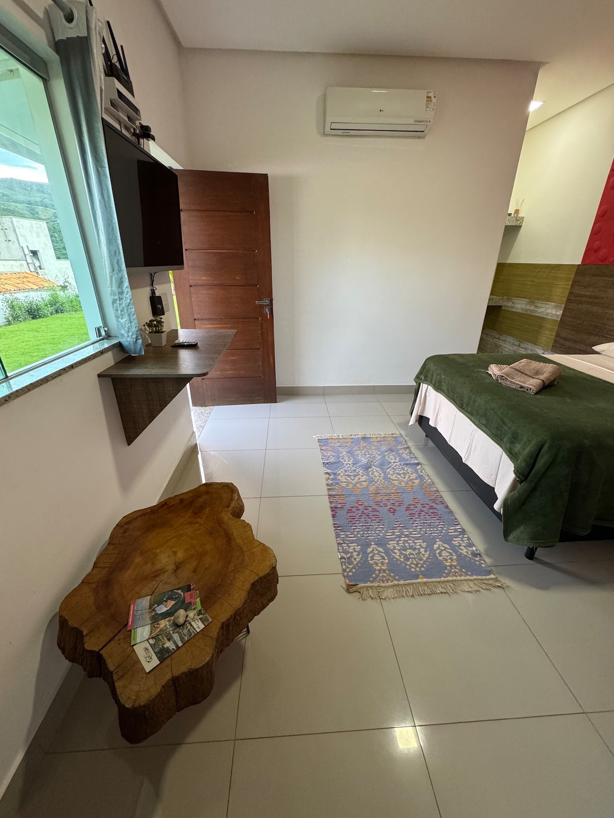 Relax in a cozy double bed and enjoy a peaceful night's sleep in a quiet and welcoming environment. For your convenience, we provide bed linen and towels, so you can travel light and in comfort. The suite has a private bathroom, ceiling fan, and a Smart TV, perfect for binge-watching your favorite series or watching a good movie after a day exploring São Paulo. Ideal for couples, solo travelers, or anyone looking for their own space to rest in comfort.