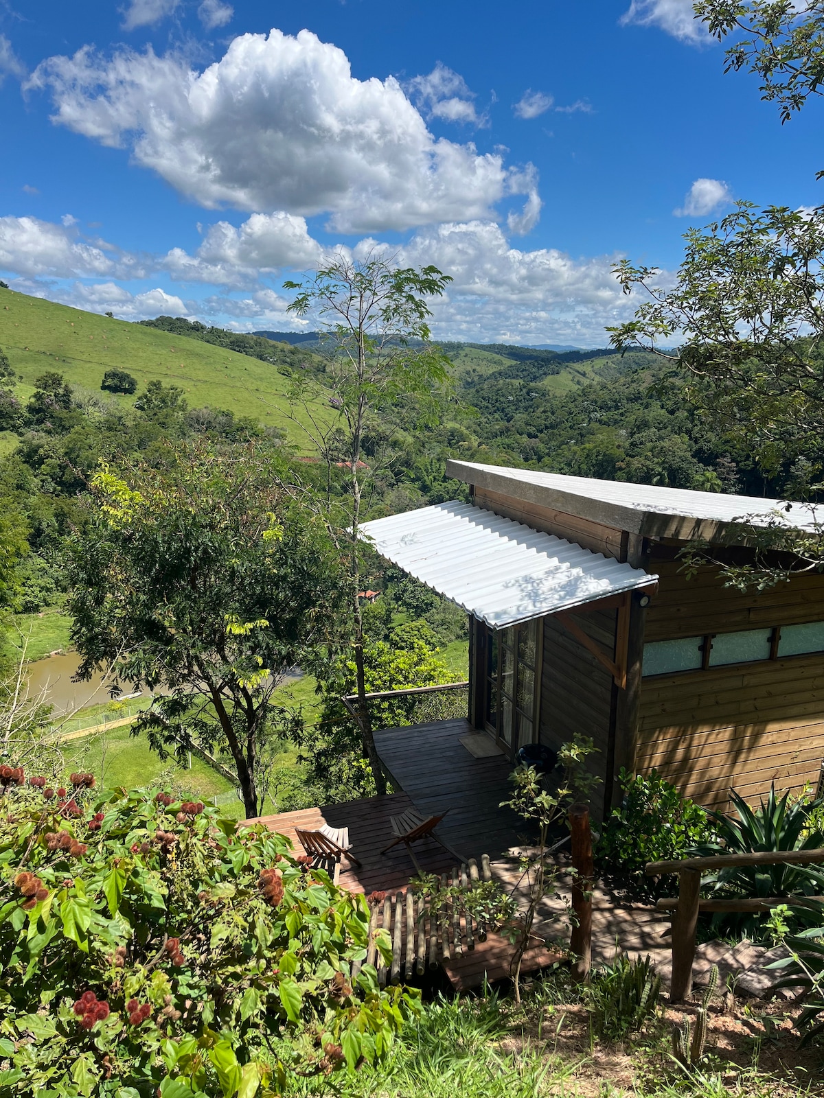 Olá, bem-vindo(a)! A Tiny House possui um design diferenciado que se integra totalmente a natureza. Uma casa particular, independente e totalmente privativa. Ficar do lado de fora ou dentro é quase que igualmente prazeroso. A atmosfera de aconchego do interior da casa, muito pela predominância das amplas portas e paredes de vidro, traz iluminação presente e o aroma de natureza que adentra o espaço, passam a sensação gostosa de bem-estar e conexão com a natureza. Venha viver essa experiência!