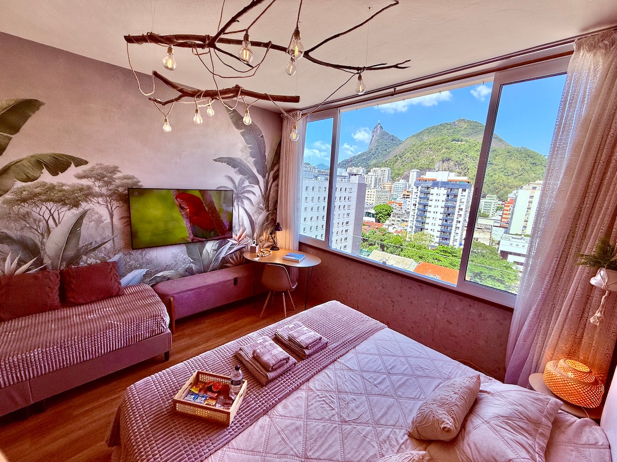 Venha viver uma experiência mágica na Cidade Maravilhosa num studio de estilo boho chic com vista cinematográfica para o cartão postal mundial do Cristo Redentor no Morro do Corcovado! Na quadra do cinena, em um prédio familiar com portaria 24 horas. Perto do metrô de Botafogo, bares, restaurantes, supermercados, farmácias e shopping center.