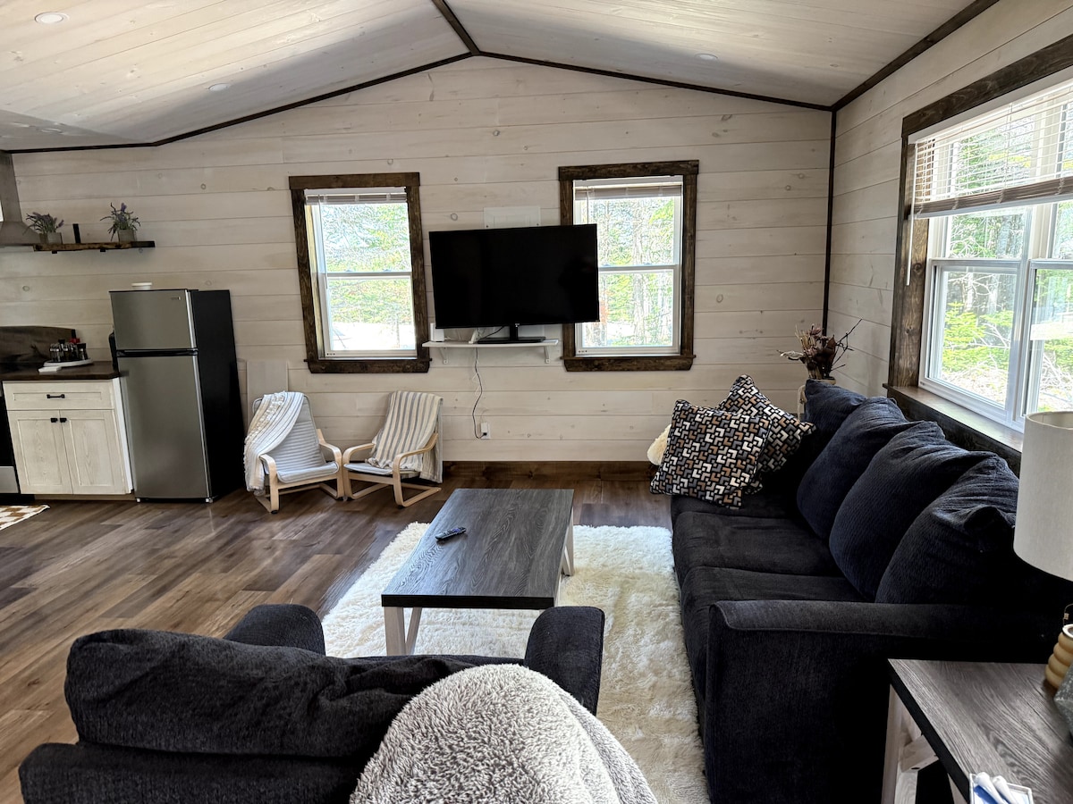 Welcome to The Captains Retreat, one of 7 cottages on the property, this cute one bedroom cottage, with pine interior is cute and rustic and the perfect place to unwind. It can be for just a couple or if you have kids there is a pull out sofa in the living area. Enjoy your coffee on the deck in the morning or a nice fire in the fire pit at night. A saltwater/freshwater lake a 20 minute hike behind your cottage or a nice hike to the beach across the road. 20 mins from Hopewell and Fundy