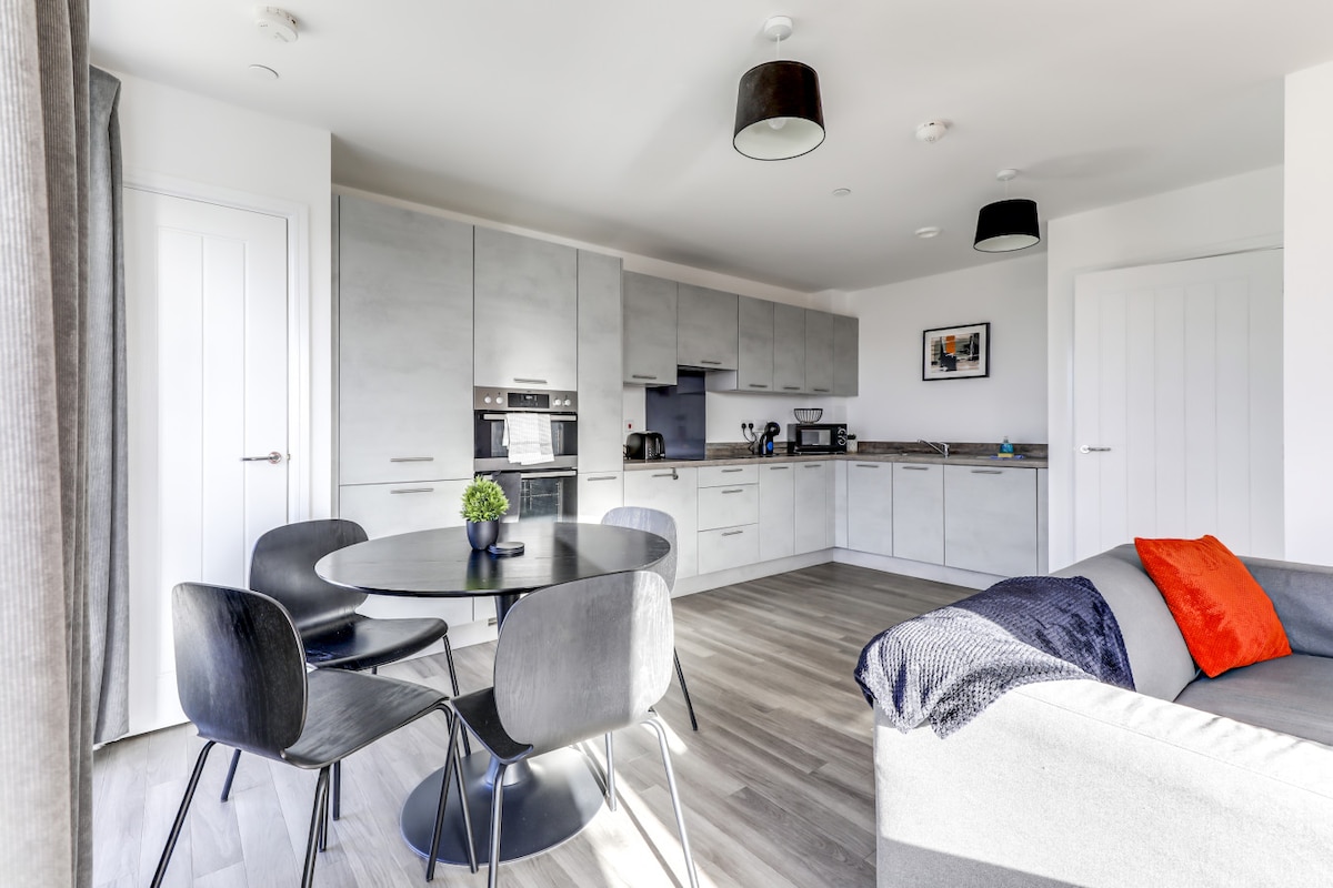 Enjoy a stay at this stylish 2 bedroom, 2 bathroom flat (with lift) in the heart of Chelmsford, with off street parking & large windows to enjoy the views. It is fully furnished with all you need - washing machine, cookware, kitchenware, coffee machine, dishwasher, etc It's a 6min walk to the city centre, Bond street(fine dining and shops), 12min walk to Chelmsford train station, 12min drive to Broomfield Hospital, 12min drive Big Business Entrepreneurs, 16min walk to Anglia Ruskin University