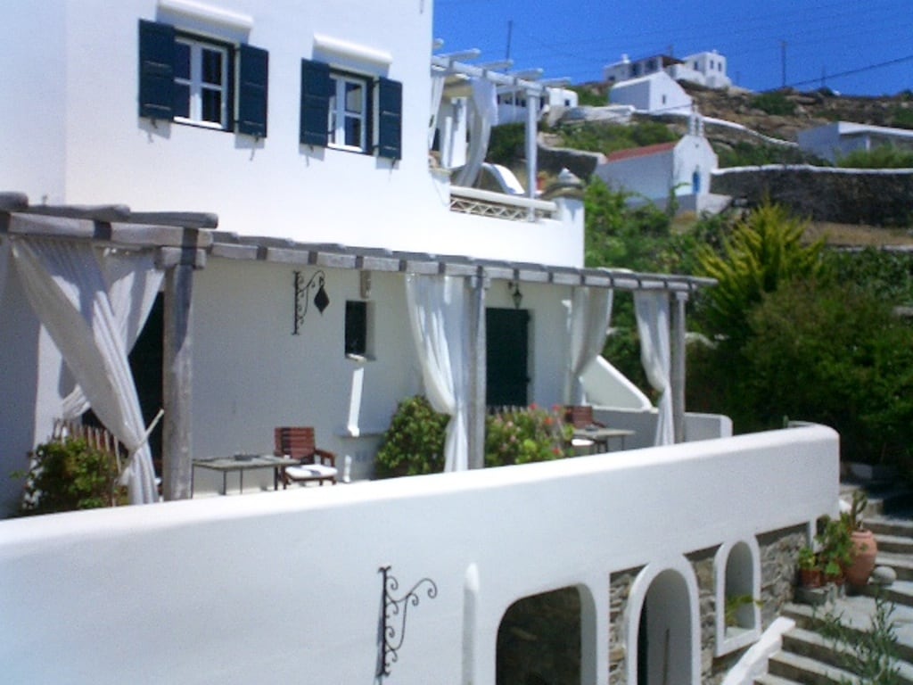 Location! location! location!My place is located next to the Princess of Mykonos 5star hotel.Few steps from everything that you need!Beachfront Villa ELENI 160 sqm! with stunning sea view,few steps from the marvelous Agios Stefanos beach. Mykonian style Villa has 2 balconies overlooking the sea and the Mykonos town with the windmills! The House consists of 3 bedrooms! large living room, kitchen,3 bathrooms!.For more information please contact me anytime,I will be very happy to be your host!