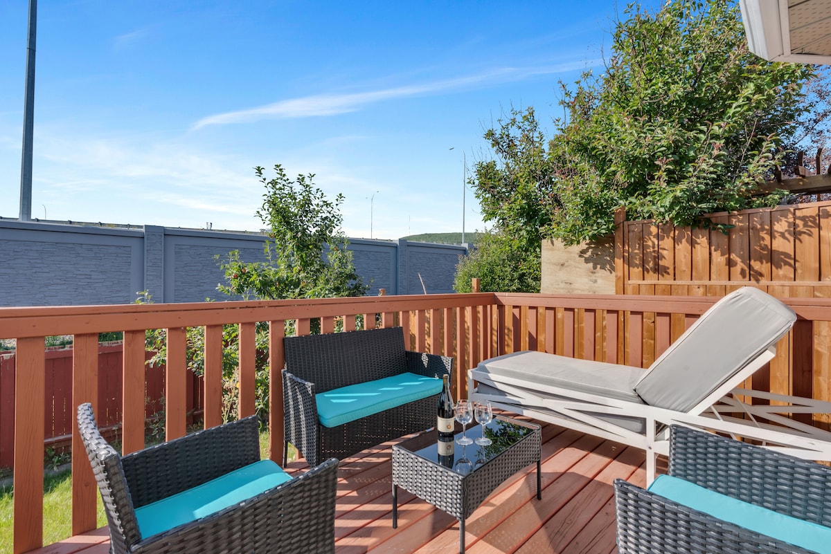 Serene Retreat in Riverstone of Cranston, South Calgary Relax at our peaceful sanctuary in a stunning neighborhood along the Bow River. Only 30 minutes from downtown Calgary and a direct drive south on Deerfoot Trail from the airport. Close to South Health Campus, Seton shopping area, and the world's largest YMCA with a kids water park and surf simulator. Spruce Meadows show jumping facility is 15 minutes away. Pet and marijuana friendly. Enjoy serenity, convenience, and excitement!
