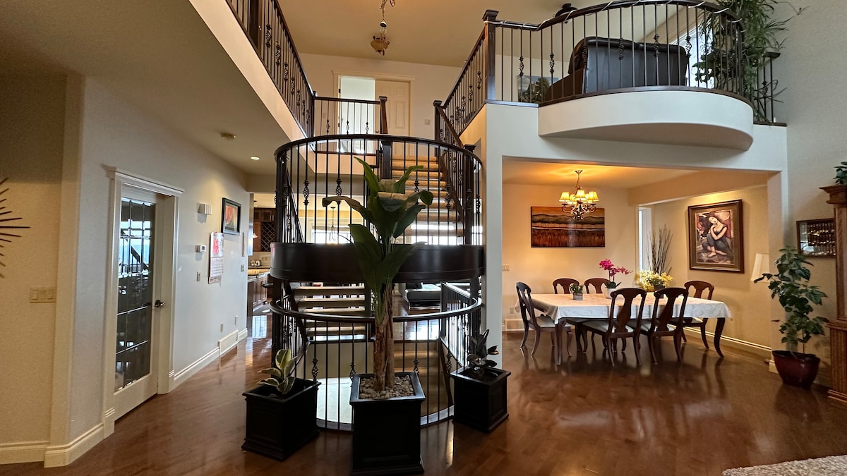 This luxurious home is located in one of Calgary's most prestigious neighborhoods, offering the perfect blend of tranquility and luxury with stunning panoramic views of the Rocky Mountains. With four bedrooms and an office that can be converted into a sleeping area with a queen bed (advance notice of one week required), the house comfortably accommodates up to 10 guests. It also features a private cinema, an equipped gym, a bar, and many more spaces waiting for you to explore!