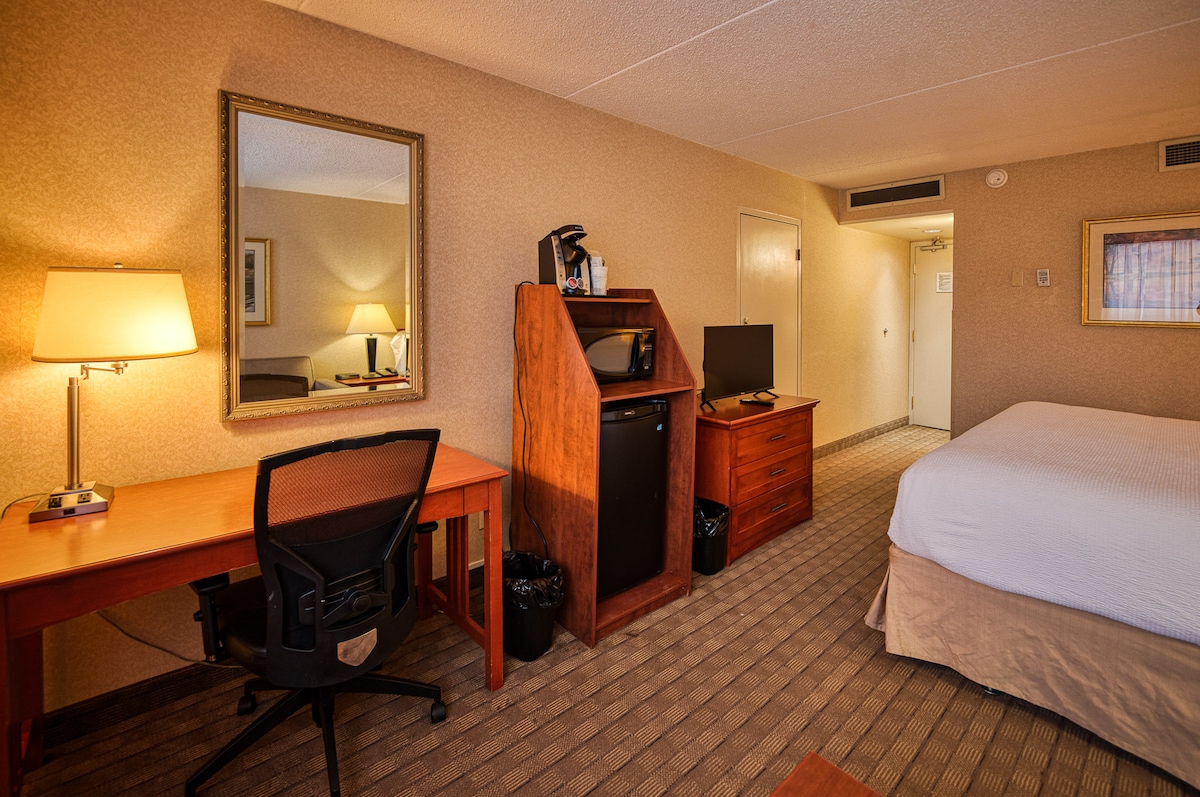 This modern hotel is easy to access off of Trans-Canada Highway 1. The space is clean and up to date. You have access to several on-site amenities including a gym, pool, hot-tub, restaurant, washer/dryer, and more. Your room includes a new and stylish kitchenette and a private bathroom. You will enjoy free wifi and free parking. You get free hot breakfast!!!