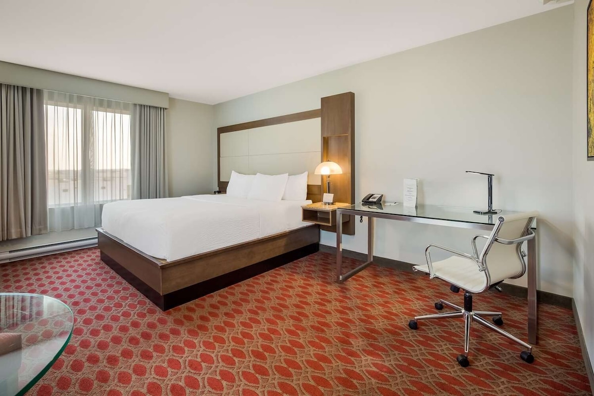 Perfect for families or small groups, this two-queen room provides space and comfort for a restful night. The hotel’s location near Fish Creek Park makes it ideal for outdoor enthusiasts. Free parking and nearby public transit make city exploration hassle-free.