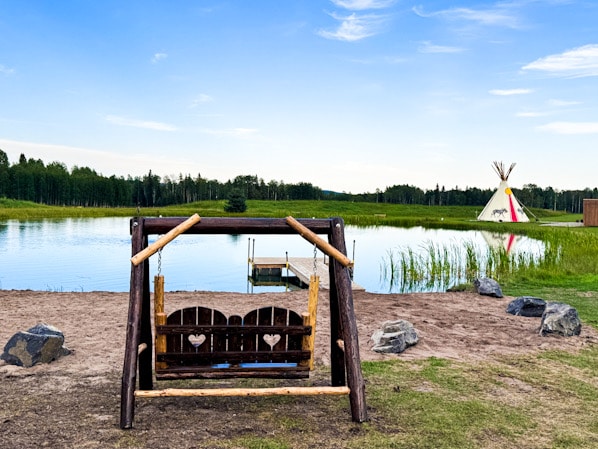 Experience a unique romantic glamping getaway in Water Valley, Alberta. Less than a one-hour drive from Calgary, our charming tent sits on a scenic 40-acre property with a tranquil lake. Inside, you'll find a cozy heated king-size bed for ultimate comfort. Enjoy outdoor cooking with the BBQ, and gather around the fire table under the starry sky. Immerse yourself in nature, unwind, and create unforgettable memories at our picturesque glamping site. Book your romantic getaway today!