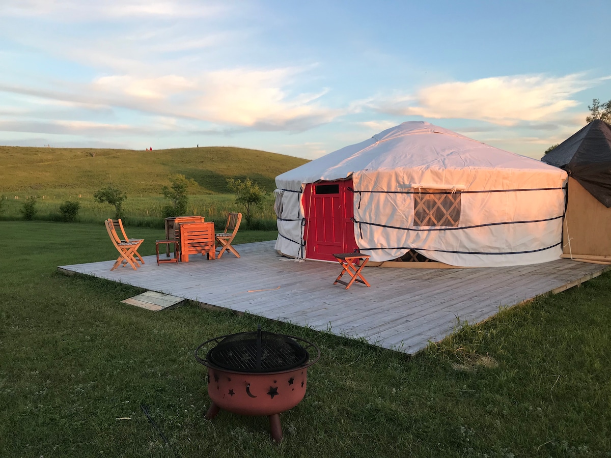 Experience a unique romantic glamping getaway in Water Valley, Alberta. Less than a one-hour drive from Calgary, our charming tent sits on a scenic 40-acre property with a tranquil lake. Inside, you'll find a cozy heated king-size bed for ultimate comfort. Enjoy outdoor cooking with the BBQ, and gather around the fire table under the starry sky. Immerse yourself in nature, unwind, and create unforgettable memories at our picturesque glamping site. Book your romantic getaway today!