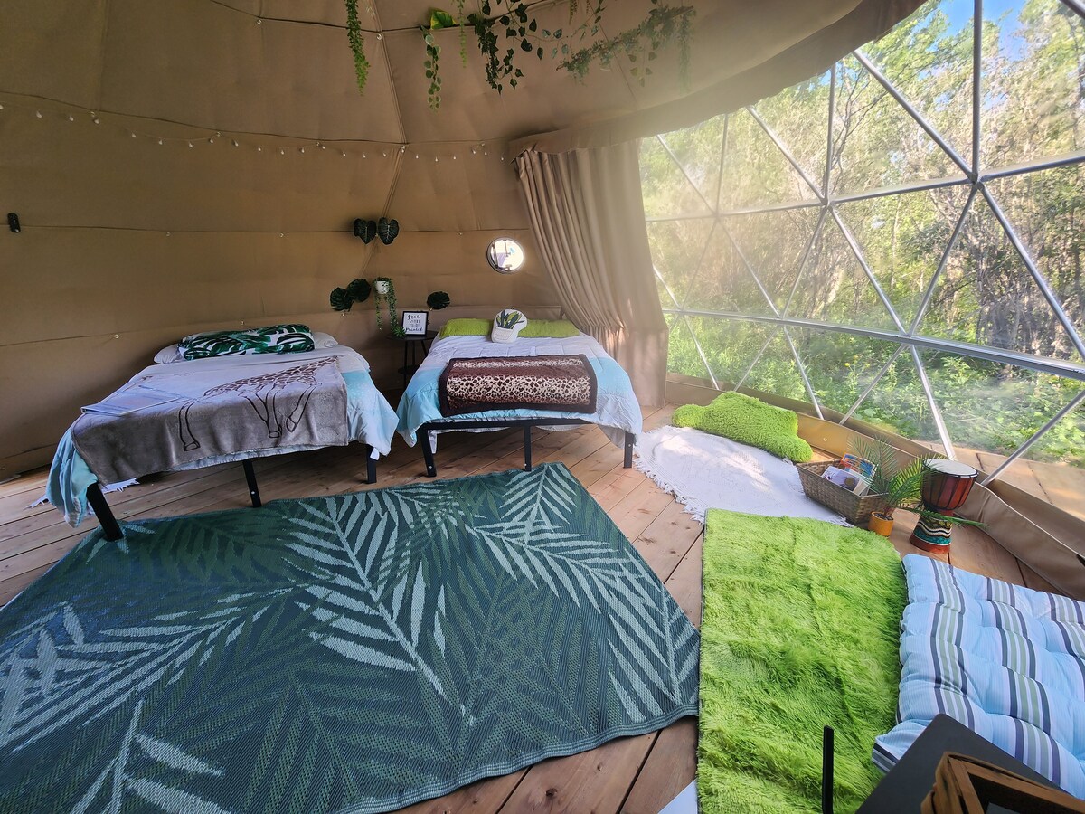 Ready to escape the Canadian Badlands? Let’s enter your own little rainforest getaway. Enjoy 2 double beds, lots of greenery and relax in your own tropical oasis. Although the Badlands are known for hot, dry weather during the summer months we want you to enjoy the ability to have a green, lush surroundings within your geodome after a long day of outdoor adventure. Bridgeviews strives to ensure our location has a little of everything for everyone.