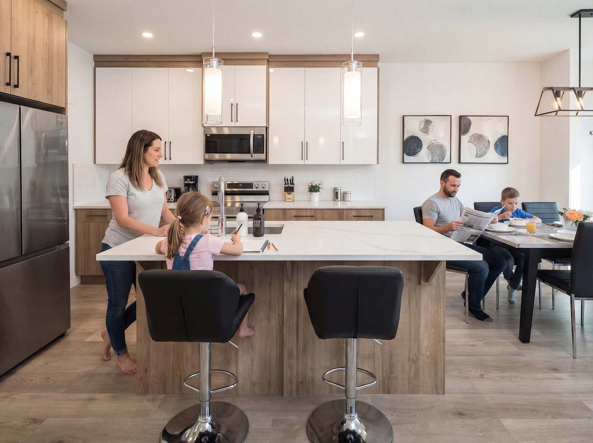 全新1500平方英尺房源,带空调和车库|距离市中心7分钟|可供8人入住