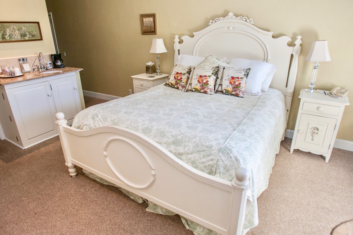 Private Apartment Includes: - Two spacious bedrooms - A full bathroom - A charming, fully-equipped kitchen - A large living room with a queen-sized pull-out bed for extra guests - Coffee (French press and drip), tea & accoutrements. - A private patio Enjoy a complimentary breakfast delivered to your door each morning, featuring fresh-baked goods, seasonal fruit, and cold-pressed juice. For extra, place a paid order 72 hours in advance, subject to Ollie's availability. Link shared upon request.