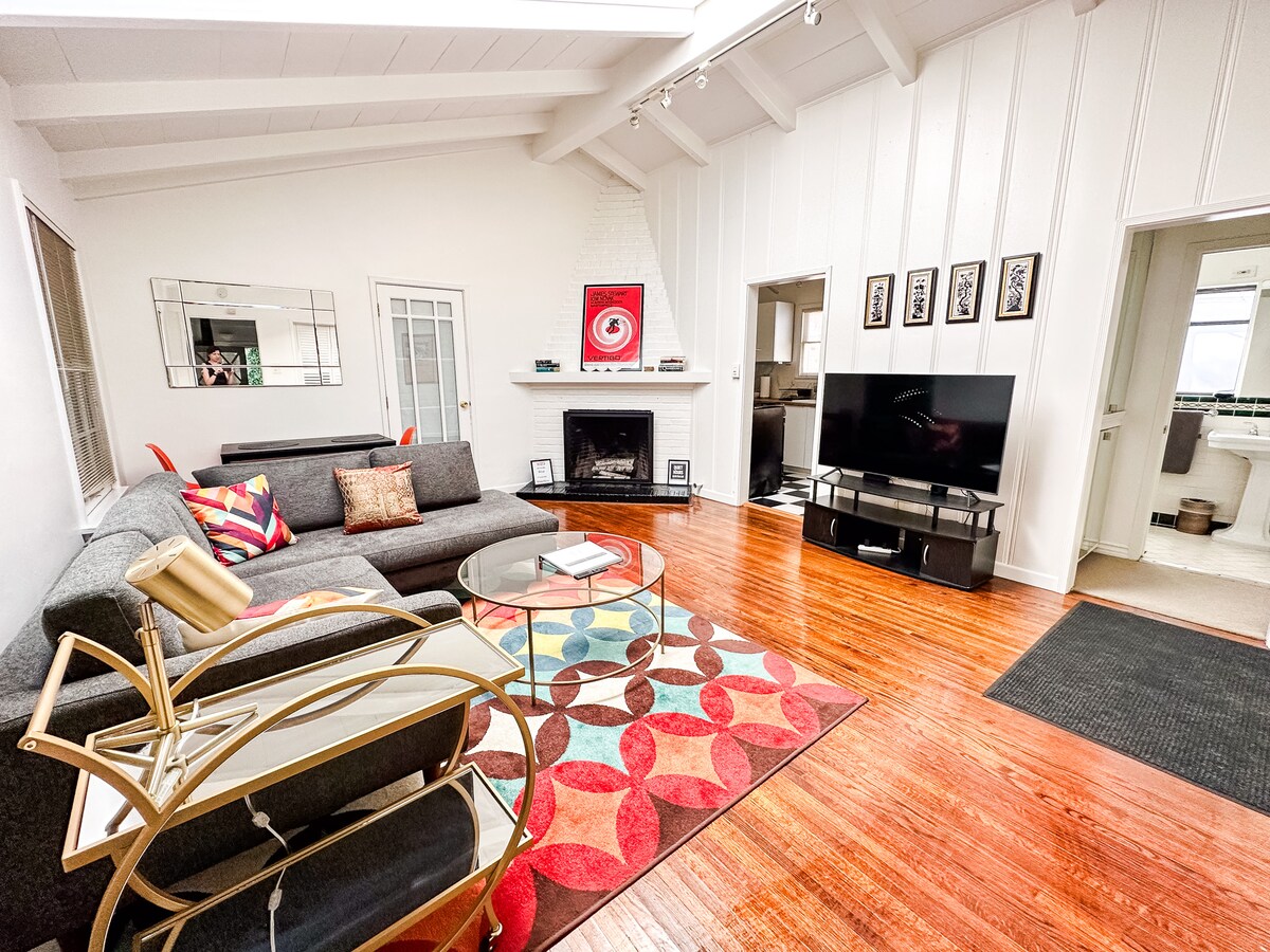 Featured in Remodelista, the Blush House is a design dream—skylit, with rose-gold fixtures, modern decor, and plentiful lounging space, it's fully-stocked with essentials and extras for a heavenly California stay. Catch rays or a meal on the wood deck. The light-drenched living room, picture-perfect blush kitchen, and eat-in nook are also central gems. Relax on the sofa with endless SmartTV options, or work (if you must!) at the gorgeous built-in desk. Easy, free parking on a safe street.