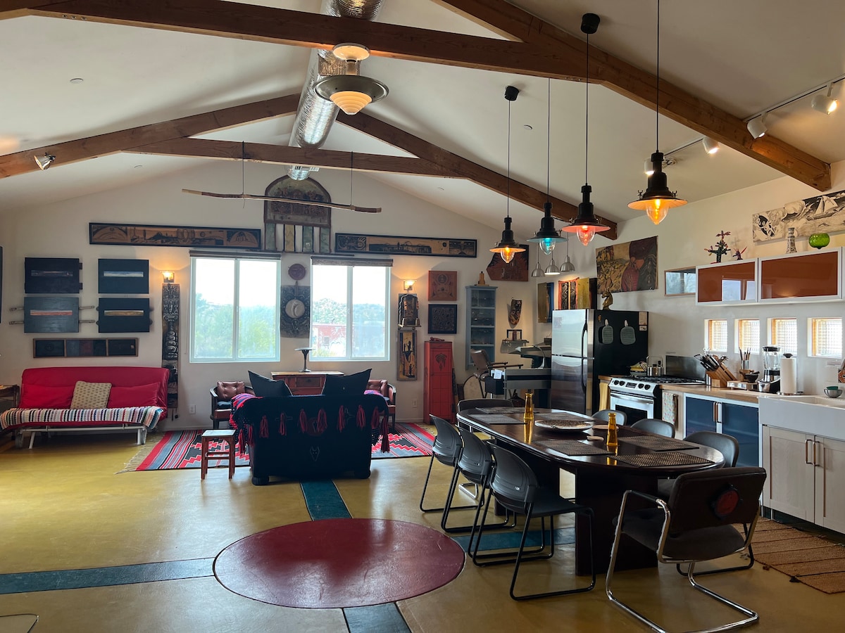 Featured in the LA Times and Apartment Therapy, El Dorado Oasis is a historic homestead set on 5 acres that has been lovingly restored by filmmakers Kit Williamson and John Halbach. Its chic interiors combine mod bohemian and Southwestern design, inspired by the raw beauty of the desert. After a day of exploring Joshua Tree National Park or Pioneer Town, you’ll come home to bask in the beautiful sunsets around the fire pit, hammocks and cowboy pool, or soak under the stars in the hot tub.