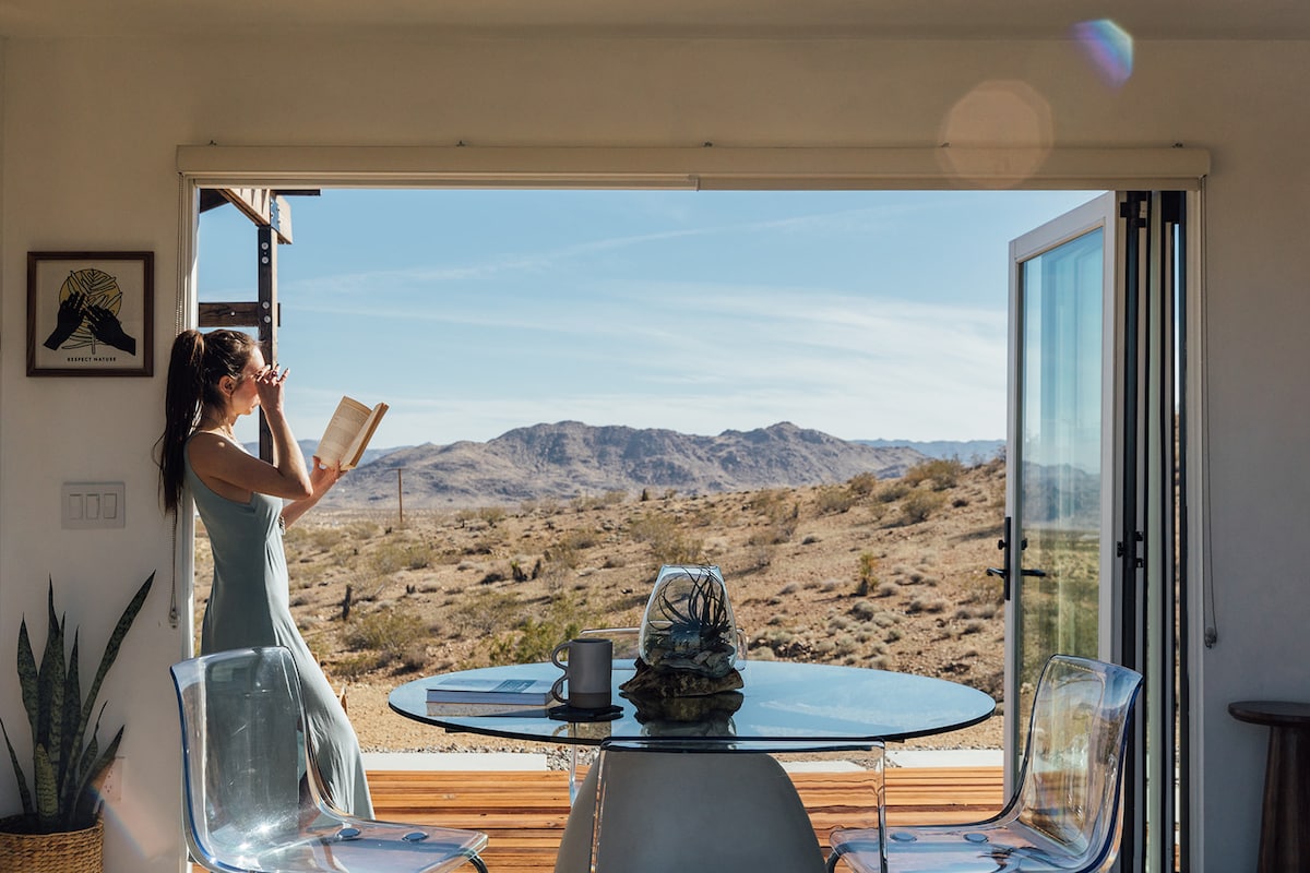 Welcome to a one-of-a-kind 3-story container home. The rooftop deck offers breathtaking views of Joshua Tree National Park. Sit back in our outdoor entertainment area and enjoy the pool, spa, firepit, and more. The property provides exceptional privacy on 2.5 acres and conveniently located just a 7 minute drive to Downtown Joshua Tree and 15 minutes to Joshua Tree National Park.