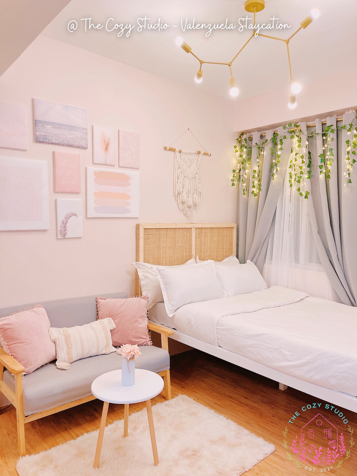 PLEASE READ BEFORE BOOKING 🩷 The Cozy Studio is a fully furnished unit with aesthetic vibes & soothing ambience. It is ideal for relaxation, romantic dates with your love one, movie night with your bestie or spending some time alone. It has fast wifi, perfect for Netflix and chill or K-Drama marathon. Get comfy with Fresh Bedsheets, Pillowcase and Blanket all night. Kitchen may be small but it has your basic needs for cooking. Bathroom is equipped with shower heater for relaxing shower.