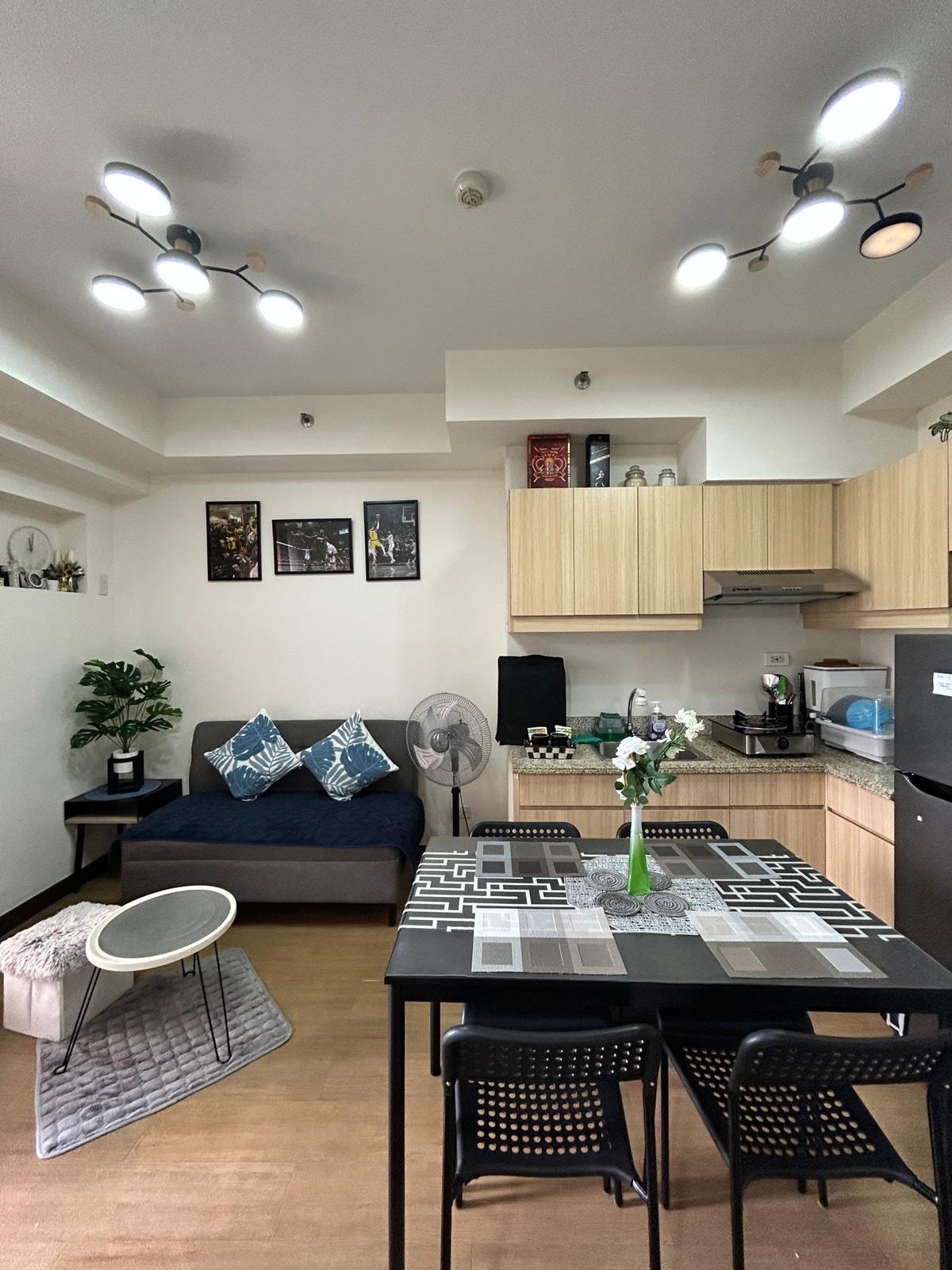 Discover our spacious and bright 1BR end unit in newly built Tower 4, Fern Residences. Designed with you in mind, our luxurious boutique-hotel style unit features a fully-equipped kitchen, hotel quality mattress and beddings, convertible coffee to dining table, washing machine and fast WiFi. It is ideal for short and extended stay travellers and for those who just want to have a relaxing staycation.