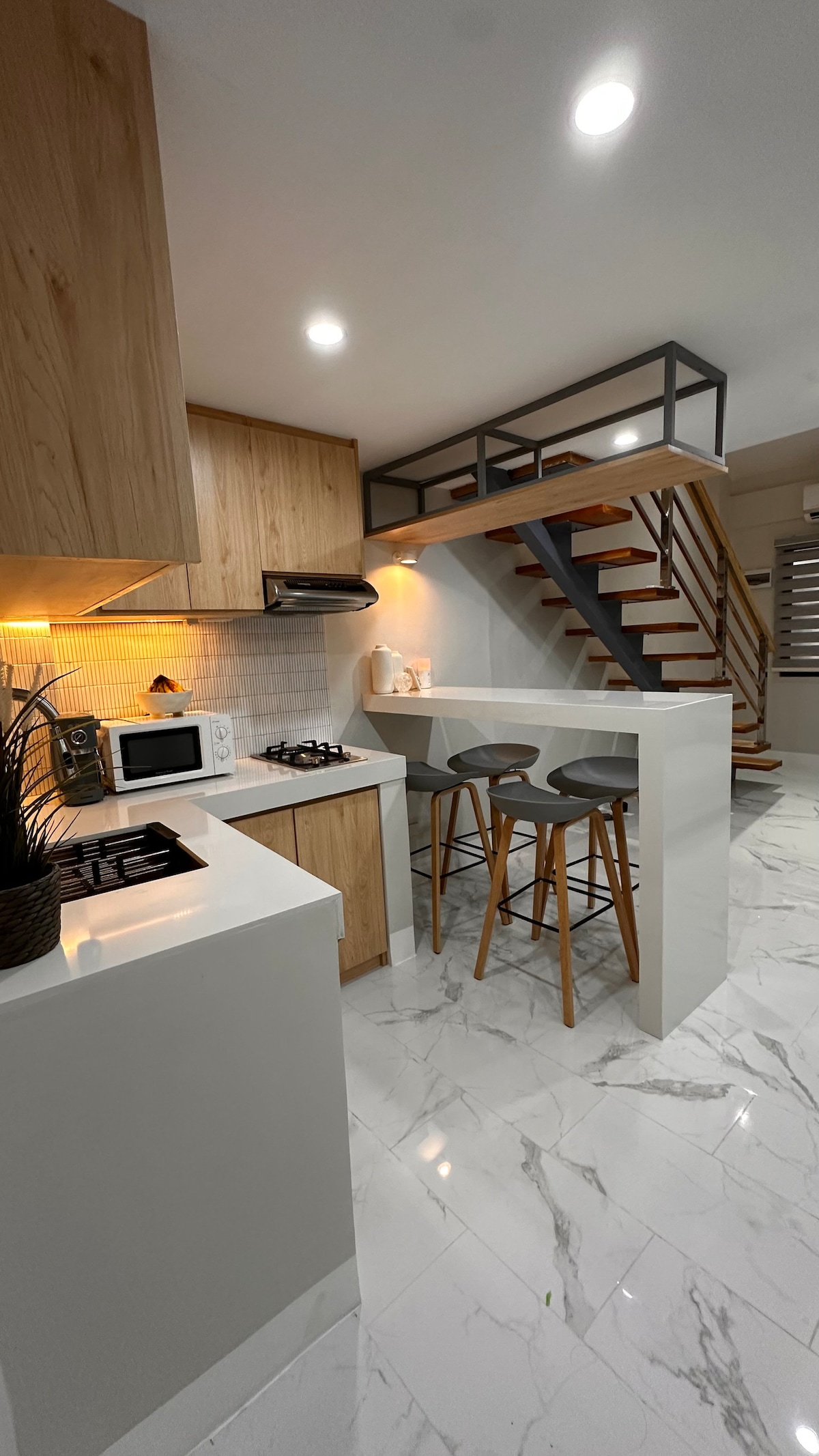 Escape to our charming team kahoy staycation unit, where comfort meets convenience. This delightful retreat features a well-appointed 1 bedroom with a fully functional kitchen, a bathroom with a soothing hot and cold shower, an air-conditioned room for a peaceful sleep, a 43" TV for entertainment, and a dedicated working table. Additionally, we offer PAY PARKING within the building, and our prime location puts you just a stone's throw away from Ayala Mall Cloverleaf.