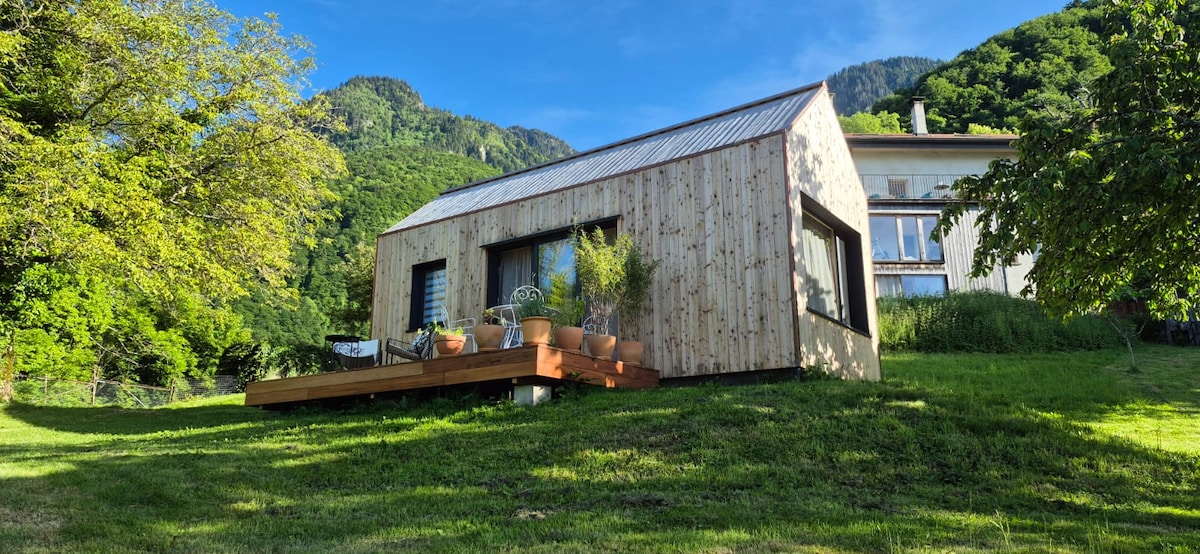 Perchée au cœur de la forêt du domaine "Les Cabanes du Pas de la Louve", la cabane Petite Buëch allie modernité et nature dans un écrin lumineux et épuré. Accessible par une passerelle de 75 mètres de long, elle se dévoile comme une parenthèse suspendue hors du temps. Son jacuzzi privatif, sans vis à vis, niché au pied d’un chêne centenaire, invite à un moment de détente, été comme hiver. À la nuit tombée, le lit peut glisser dehors pour une nuit sous les étoiles.