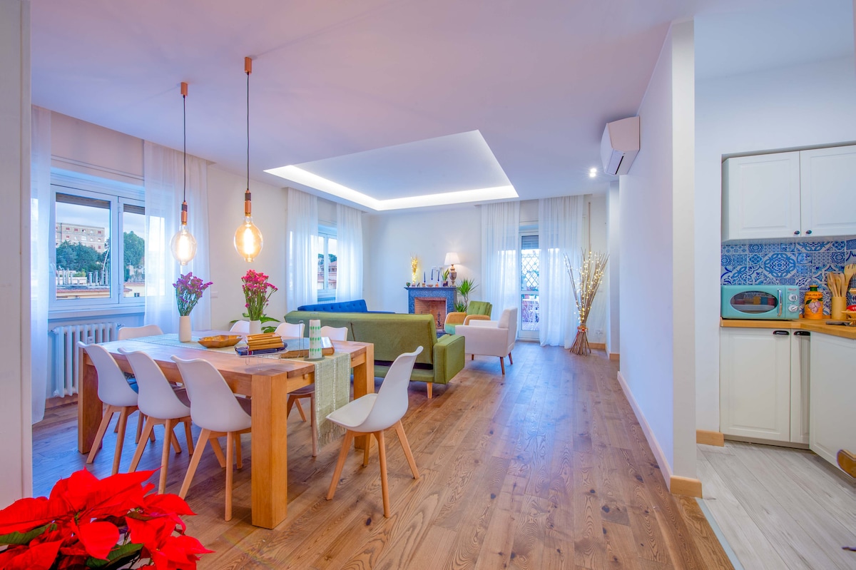 Welcome to Benvenuto Cellini's birthplace. One of the foremost artists of the 16th century. With gold and silver, he sculpted dreams. The paintings adorning the apartment will narrate tales of his timeless masterpieces and his bold, contentious spirit. From the living room window, you can marvel at the Duomo and Florence's iconic monuments, or let inspiration wash over you from your private terrace. From here, Florence will surely etch itself into your heart forever.