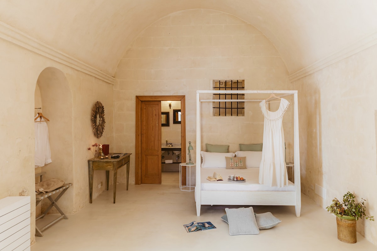 The accommodation, entirely dug into the soft calcareous sandstone of the Sassi, is located right in the center, in a strategic but at the same time private position, a few steps from Piazza del Sedile. You can stay in an environment equipped with excellent comfort and cleanliness and enjoy total privacy thanks also to the outdoor space at your complete disposal. You will have the feeling of being in a real discreet, but in the context of a millenary and sustainable City Nature