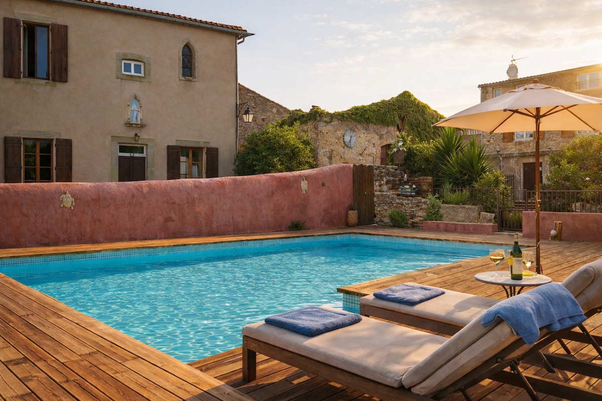 Séjournez dans un ancien couvent rénové avec piscine, à seulement 10 min en voiture de Carcassonne. Maison de caractère datant de 1877, alliant charme de l’ancien modernisé, idéale en famille ou entre amis. Logement entièrement indépendant avec terrasse privative, dans un environnement calme entouré de vignes. Profitez des extérieurs pour vous détendre. Jardin et piscine partagés dans une ambiance paisible et respectueuse.