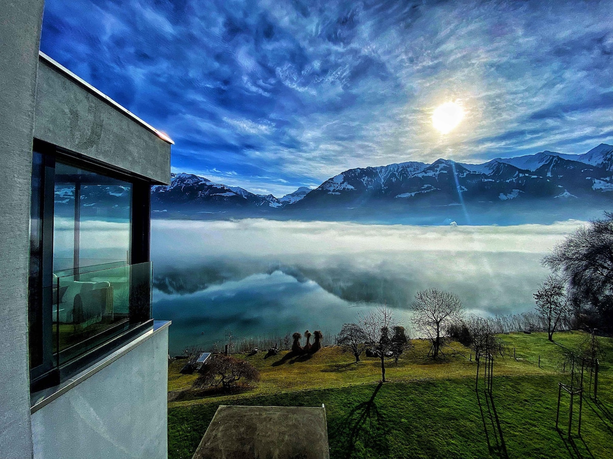 Private suite on the top floor of the owner-occupied Villa Wilen, directly on Lake Sarnen, unique alpine views, sunrises Spacious bedroom with home cinema, the panoramic lounge, large kitchen and bathroom (all privat area). For 3–5 guests, an additional private bedroom with bathroom is provided one floor below (lift access - shared area). Lake and garden access, SUPs, free parking & WiFi. Children welcome, small dogs only. Most popular Swiss Airbnb. Most highlights are reached within 1 hour.
