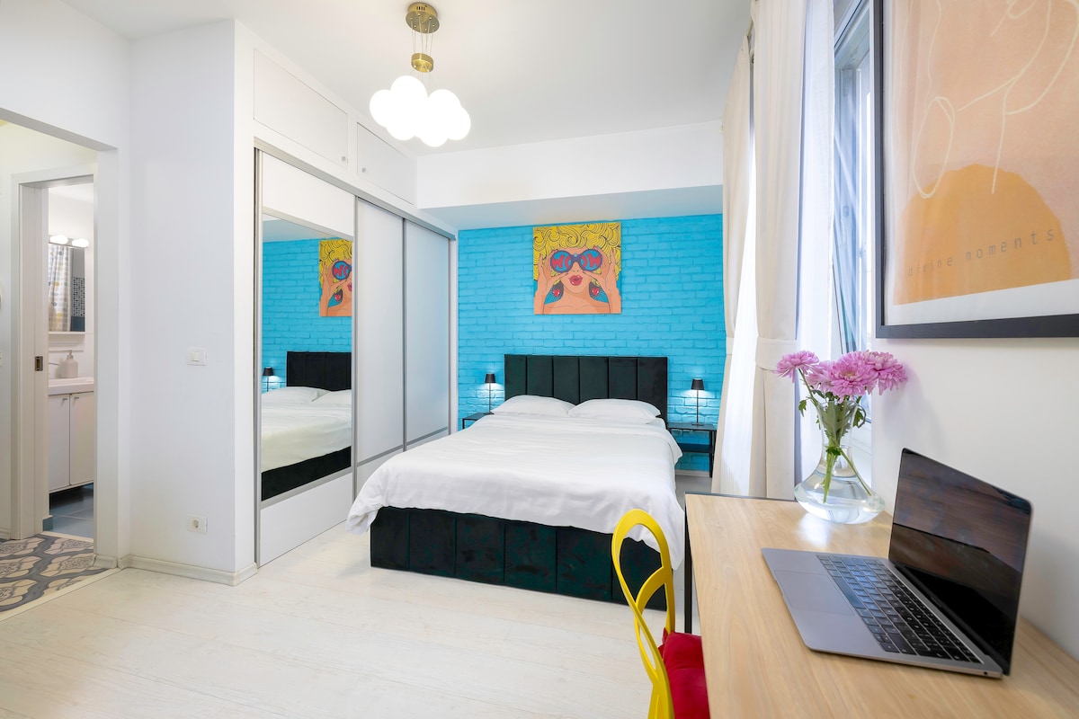 The apartments, delicately restored, have a maximum capacity of two people, are equipped with a queen size bed (1.60 m x 2.00 m) and a sofa. Large windows let in natural light in a quiet urban setting. They have a living-dining room, bedroom, fully equipped kitchen and bathroom with shower. The interior colors convey freshness, tranquility, confidence, well-being, positive energy, stimulate creativity and reading. TOURIST TAX: 6.88€ per night per person, for up to 7 nights (adults only).