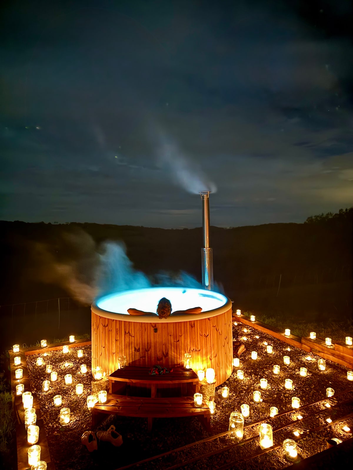 Das Roulotte ist ein brandneues, gemütliches kleines Holzhaus auf Rädern, das in diesem Jahr komplett neu aufgebaut wurde. Es wurde mit viel Liebe zum Detail gestaltet und eingerichtet, um seinen Gästen einen ruhigen und erholsamen Aufenthalt zu bieten. Das Roulotte ist perfekt für Paare oder Alleinreisende, die dem Alltagsstress entfliehen und sich inmitten der Natur entspannen möchten. Auf der Terrasse können Sie sich im privaten Whirlpool entspannen und den Blick auf die Sterne genießen